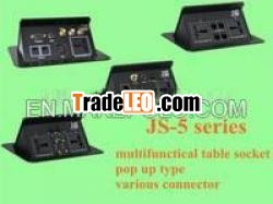 1. When open, the panel of the terminal box will automaticallyprop up at 45° 2. Durable pneumatic movement and mechanical latchingmechanism 3. Power supply uses flushbonading structure, include powderinsulation disc and power indicator, safety and reassurance 4. Oxidation and drawbench treatment supply high-classappearance 5. Use 5mm imported aluminium-magnesium alloy for panelmaterial. The spacing between inside and outside panels is within0.5mm 6. UK, EU, SA, US, FR and AU standard power plug available 7. Suitable for office and conference room. 8. can be customized by your request |