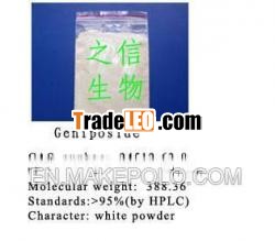 Geniposide is purified from gardeniajasminoides Ellis dry mature fruit.It is white color crystal orpower, easily dissolve in water, dissolve in alcohol, and do notdissolve in petroleum ether. Pharmacological effects: 1) Effect ofgeniposide on the digestive system; 2) The effect on thecardiovascular system; 3) The effect on the central nerve.