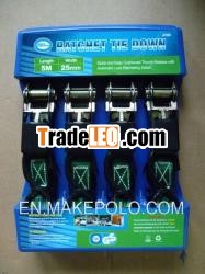 4pc ratchet tie downs with"S" hooks packing in plastic tray