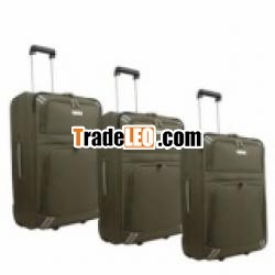 Description: New piping trolley case with integrated trolleysystem, aluminium tube with push button, corner skate wheels. EVAfront with one pouch pocket, flap handle, webbing piping inside,one zip pocket inside, mesh pocket inside.