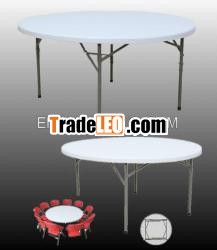 Product Name: round dining table Material:HDPE & Powder clad steel tubeColor: Ivory oras per customer’s requestUnfolding size:150*150*74cmFolding size:152*152*4.5cmPanel Thickness:45mmSteel Tube: Dia28*1.0mmNetWeight: 18.5kgsGross Weight:20.5kgsPackage size: 150*150*6cmHold capacity: 180kgs at least