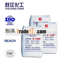 Applications:Rutile Titanium Dioxide pigments R1930 is high grade,general use, multi-purpose product, widely used in industries suchas high grade indoor&outdoor coatings, interior and exteriorlatex paints, industrial coatings, powder coatings, plastics (PVC,PE, polystyrene and polyurethane etc.), masterbatch, PVC profile,rubber, high-grade printing ink and paper making,etc..