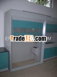 Casework: 1.2mm thickness of cold-rolled steel plate, after acidwashing, phosphide and electrophoresis, sprayed with good qualityanti-corrosion static coating.Inside Lining: 4mm thickness ofCompact.Worktop: 12.7mm Wilsonart Chemsurf chemical-resistantlaminate, install with a hurdle to prevent spillage of liquid.Sash:6mm of tempered glass.Sash Handle: 2mm Cold-rolled steel poweredwith epoxy coating.Illumination: with not less than 300 Lux 30Wfluorescent lamp set.Cupsink: Oval shaped PP CupsinkWater Tap:Molded in one piece copper water tap, epoxy powder coating surfacewith a ceramic valve.Exhausting Duct: Anti-corrosion Fiberglassduct/ PVC.10. Plinth: With 1.5mm thickness of cold-rolled steelplate, after acid washing, phosphide and “dian yong”, sprayed withgood quality anti-corrosion static coating.