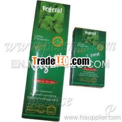 Vegetal Vigra(herbal viagra)As made from natural herbs, the product take effectinstantly, enduringly, and contains no polsonous element and has noside effects; Moreover, as being strictly inspected and examinedpill by pill through test of medicinal properties, the product hasbeen qualified for international certification criteria. Maintainand prolong male erection and help delay or prevent prematureejaculation.Target Crowd: If your are bothered by the size ofyour penis, the softness of your erection, the short time of yoursexual intercourse time, the absence of sexual urge, the atrophy ofpenis, early ejaculation, please choose the Herbal Viagra ! HerbalViagra is the best way to aggrandize your penis and enhance thepenis health condition.Caution: 1.Contraindicated for the minor and pregnantwomen. 2.Do not take an overdose of this product. 3.Take coolboiled water if users are in trouble of frequent erection orlong-time erection during sexual intercourse after use.Specification: 120mg*8 Capsules*2boxesDosage: take one capsule 15 minutes before sexualintercourse