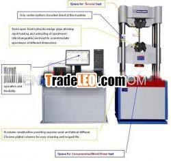 WAW series (Dual space) Servo-hydraulic universal testing machineis ideal for high-capacity tension, compression, bend/flex, andshear testing. It accords with the relative requirements of EN,ISO, ASTM, JIS, GB, NF and many other testing methods. These framesfeature dual spaces so users can quickly change between tension andcompression testing without having to remove heavy fixtures.