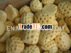 Fresh frozen pineapple,IQF pineapple1. Spec: Fanshape: 1/6; 1/8; 1/12cut,whole/half Dice: 10*10 mm 2. Feature: nutrient fruit which have vitaminA,B1,B2,C, etc.it is very helpful to health 3. Certificates:HACCP,BRC,KOSHER,etc 4. Have own plant and factory, withstrict QC 5. Packing: 1*10kg/ctn or as per the buyer's request2012 fresh frozen pineapple