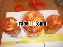 Kimchi , also spelled gimchi, kimchee, or kim chee, is atraditional fermented Korean dish, made of vegetables with variedseasonings. Kimchi may also refer to unfermented vegetabledishes.There are hundreds of varieties of kimchi, made with a mainvegetable ingredient such as napa cabbage, radish, green onion orcucumber.[4] Kimchi is the most common banchan, or side dish, inKorean cuisine. Kimchi is also a main ingredient for many popularKorean dishes such as kimchi stew , kimchi soup , and kimchi friedrice .