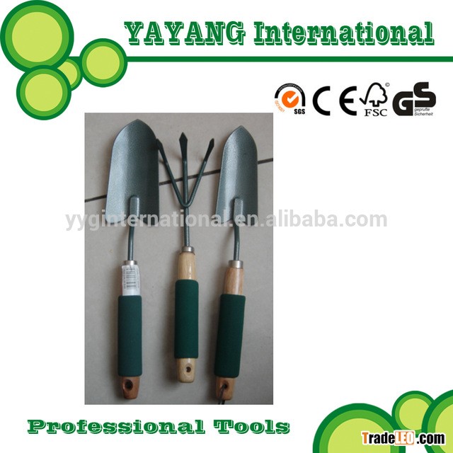 Wooden handle with foam grip garden fork, garden trowel