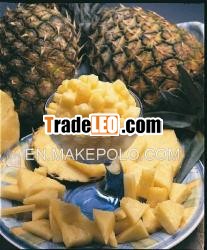 Frozen wholes, cubes and slices of fresh pineapple, which areripened to full flavor, peeled, cut anFrozen wholes, cubes and slices of fresh pineapple, which are ripened to full flavor, peeled, cut and individually quick frozen (IQF) .