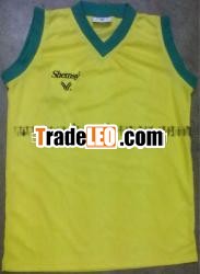 Basketball jerseys madein 100 % polyester fabric in differentcolors with customised logo printed , embroideredBasketball jerseys made in 100 % polyester with round neck orv-neck both with customised numbers , names and logos can beprinted, embroidered, tackle twilled or sublimated
