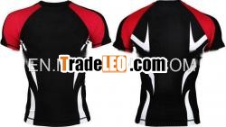 Short Sleeve RashguardWe first saw the Sanguine Long Sleeve Rashguard, now comes theshorter sleeve option for those who prefer sporting form-fittedcompression tees during training. Inspired by the Sanguine Electron2.0 Fight Shorts which we’ve seen worn to battle inside the cage onseveral occasions by Venum sponsored fighters, this snug MMArashguard looks just as sharp with pointed stripes wrapping fromfront to back. Adding contrast are the red colored shoulder panels,with sublimated logos printed on both sides that will never crack,peel or fade.
