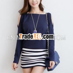 Long Sleeve Hip Over Bat-wing Sleeve Stripped GirlDress