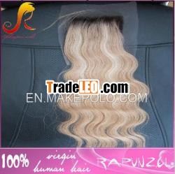 - ombre hair extension lace closure 1.4*4 & body wave&1b/613/27 2.In stock 3.Top quality 4. bleach knots