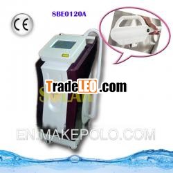 E-light(IPLRF) technology adopts the most advanced bipolar RF technology, electronic ice technology and IPL technology and so on, and also applies specific RF luminescence, directly irradiates the skin surface, selectively act on the hypodermic abnormal pigment and vein target tissues, decomposes abnormal pigment cells and closes abnormal capillaries, while strong plus light will be absorbed by the water in collagens, at the same time, thermal effect will stimulate the collagens to proliferate, thereby increasing the elasticity of the skin and achieving the purpose of rejuvenation, wrinkle removal, acne-clearance and red blood trace removal.
