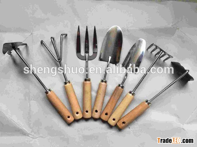 Stainless Steel Small 7 In 1 Multifunction Garden Tool Set With Comfortable wood Handle