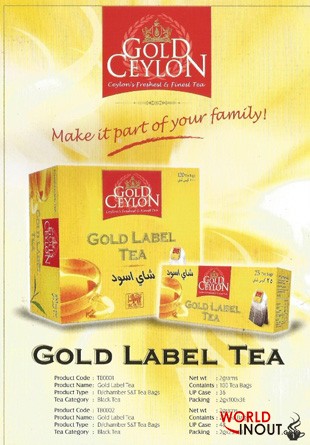 Gold Ceylon – Gold Label tea – This is a special blend of medium grown tea from the agro-climatic region of the central hills giving a full bodied cup taking the milk well.(www.tradeleo.com)