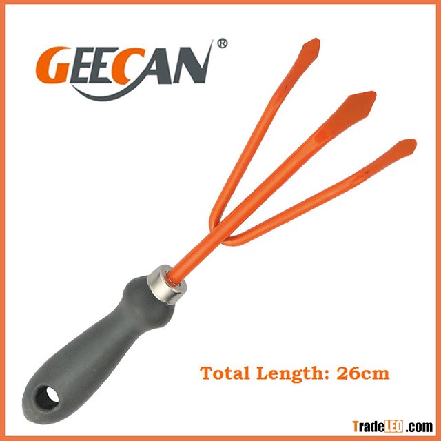 3 teeth rake for garden metal meterial blade mini trowel rake with plastic handle