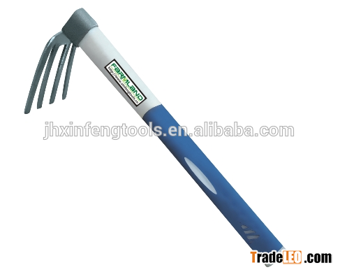 blue carbon steel TPR handle rake with 4 teeth antislip handle short handle rake garden tools