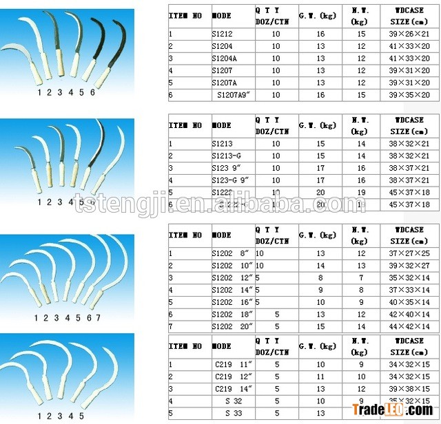 TANGSHAN CITY WOODEN HANDLE GARDEN TOOLS SICKLE S202