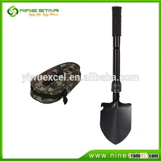 Multifunction mini folding shovel with easy storage pouch