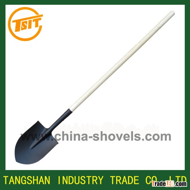 shovel with long wooden handle