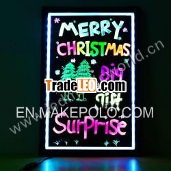 Witemessage on by handwriting with fluorescent marker pens, the colorsand flash modes could be adjust by outside controller and remotecontrol