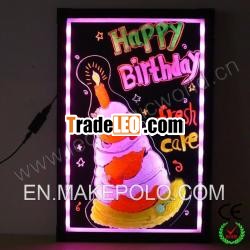 Witemessage on by handwriting with fluorescent marker pens, the colorsand flash modes could be adjust by outside controller and remotecontrol