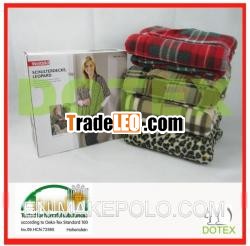 The polyester fleece wrap features two pockets.