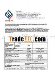 TRIPLE ConCETRATED TOMATO PASTE (36-38% BRIX) COLD BREAK PRODUCTION2009 IN DRUMS AVAILABLE FROM AUGUST 2009Weintroduce ourselves as exporter of tomato paste from China wherewehave a regular trading activity from 80''.We have estabilished alongterm cooperation with a huge producer of tomato paste CHALKIStomatoproducts co, ltd exporting wordlwide thousands of tons oftomato pasteof superb quality with all necessary qualitycertifications(HACCP, ISO9001, ISO2001, HALAL, KOSHER AND NOTGMO).In thetransaction we take care of commercial issue whereas thefinancialissue will be managed directly by the producer inChina.In case you are interested to import from us we are glad to offeras per following terms: