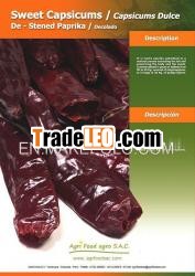 Whole Dried Destemmed Paprika PodsWe produce, process and export all kind of DRIED CAPSICUMS orDRIED CHILI PEPPERS as PAPRIKA (Whole pods, Chopped, Destemmed,Deseeded, Flakes, Ground, Paprika Seeds, etc.), SMOKED PAPRIKA,PAPRIKA AHUMADA, CHILE GUAJILLO, CHILE ANCHO, CHILE PASILLA, CHILEDE ARBOL, CHILE PUYA, CHILE GUAJILLO PUYA, CRISTAL, JALAPENO,CHIPOTLE, MORITA, PIQUILLO, AMARILLO (Yellow), PANCA, etc. AlsoOregano, Thyme, Etc. We supply Europe, Mexico and USA. Our companyhas offices and cultivations in the principal Valleys andIrrigations of Peru just for you.