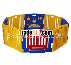 This play-penfeatures a picture house, ball spinners, play telephone, and aswinging hinged door with safety lock. The size of this playpen canincrease or decrease by removing or adding panels. It also maycreate interest and encourage mobility for your child. Makes agreat holiday gift.