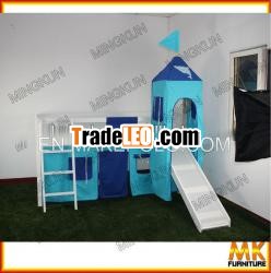 children mid sleeper, pine playtime bed, mid sleeper with castledoor, slider, slats, tunnel, tent.100% cotton fabric tentchildren loft bed, pine playtime bed with castle door, slider,slats, tunnel, tent.100% cotton fabric tent with privatepicture