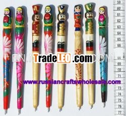 Russian Dolls Matryoshka Style Wooden Pens with Ethnic Ornament, Travel Promotional Gifts, Folk Ar