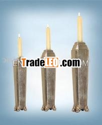 Set of three hand painted silver leaf resin candleholders, homedecoration, gifts, crafts, size: 14, 12, 10inchSet of three hand painted silver leaf resin candleholders, homedecoration, gifts, crafts, size: 14, 12, 10inch