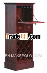 Good Quality and Good Design Solid Timber Mahogany Wooden 1 Door 2Drawer Wine Rack with Glass Hanging| TYPE | WINE RACK |