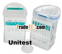 Unitest One Step Multi-drug screen Test panel (Urine) withintegrated cup (10 parameters)The UNITEST One Step Multi-drug screen Test panel (Urine)with integrated cup is a rapid urine screening test panelthatcan be performed without the use of an instrument. Every testutilizes a monoclonal antibody to selectively detect elevatedlevels of amphetamine in urine. The One Step Multi-drug screenTestpanel (Urine) yields a positive result when Drugs in urine reachthe specific cutoff concentration.Combinations (from 5 to 10 parameters)
