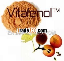grape seed polyphenol, high ORAC (18000 umoleTE/g, tested byBrunswick Labs), with excellent water solubilityVitafenolTM is extracted from theorganic grape seed with particular method. Composing abundantoligomers as powerful antioxidant factors, Vitafenol posses thesolely properties of excellent water-solubility & stability,and super anti-oxidant ability.