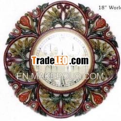 wooden wall clock with carving India
