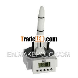 Rocket shaped alarm clockBuy Rocket Alarm Clock at Wholesale Price. Thelaunch pad doubles as mission control, where you can set the timeand the alarm from the LCD display. When it´s time to getup, the red LED lights begin to flash and the countdown begins. 10,9 if you wake up now you can abort the launch 8, 7, 6 you canstill stop it 5, 4 come on you space cadet get up 3, 2, 1 Lift Off!If you´ve failed to abort the mission by now, your soft headedrocket has launched itself across the room and the only way you aregoing to stop the alarm from sounding is by getting up andretrieving it. This is a great gift idea.