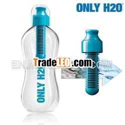 Squeeze plastic bottle with carbon filter. View all our drinkwaresuppliesBuy only H2O Bottle with Carbon Filter at the bestprice. Drink more tasteful, healthier water whereveryou go with only H2O. Just fill the bottle and push smoothly whiledrinking. The carbon filter reduces smell, chlorine anddisinfecting polluters from the water tap. Each filters has auseful life of around months or 300 refills. Moreover, thanks toits fantastic design, you will be able to carry it comfortably inthe gym bag or in the bottle espace of your bicycle. Diameter:7.5cm. Height: 21.5cm. Capacity: 500 ml