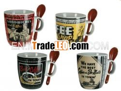 Mug with Spoon and a Retro Decoration. View our whole catalogue ofmugsBuy Ceramic Retro Mug with Teaspoon at the bestprice. What present can you give to someone who has coffeerunning through his veins? Introducing the amazing CeramicRetro Mug with Teaspoon! The Ceramic Retro Mugwith Teaspoon measures 8.5 x 7.5cm. The CeramicRetro Mug with Teaspoon comes in 4 designs, randomlyselected depending on available stock.