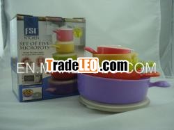 These multi coloured microware cook pots are an ideal way toquickly cook, store and re-heat food all in one utensil.Set of 5 micropots Set di 5micropots Conjunto de 5 micropots