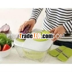 Plastic Salad Maker Set with Many Cutting and Drying Accessories -View our whole kitchenware catalogueBuy Salad Maker Set All in One at Wholesale Prices| Besides shedding water from greens, this unique spinnerallows you to slice, chop, cut veggies right into your salad.Built-in mandoline lid for cutting, chopping, slicing, grating,julienne slicing. Chop, cut and grate veggie & cheese directlyinto bowl. 7 interchangeable blades included. Easy to rotate handlemakes spinning effortless, and includes a quick stop button. Thebowl capacity is 4, 7L