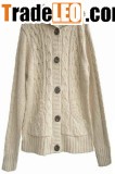 Ladies' cardigan, knitted cable allover 1) Yarn content: 2/20's 60% cotton 40% wool