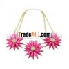fashionable hand made linked three rose resin beads sun flower statement necklace gold plated
