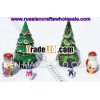 New Year Wooden Tree, Wood Handcarved Matrioshka Ded Moroz Snowman Russian Crafts Ethnic Folk Art
