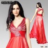 MOQ1pc 2014 new arrival dropship beaded V neck floor length sexy a line evening exotic long red prom