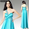 MOQ 1pc 2014 new arrival Dropship beaded floor length light blue a line long one strap prom dress