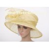12cm Brim Light Yellow Women Church Hats , Sinamay Fascinators With Feather For Party
