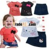 girl's cute 2pcs set, girl's denim skirt 2pcs set, baby girl's t-shirt 2pcs set, MS-2